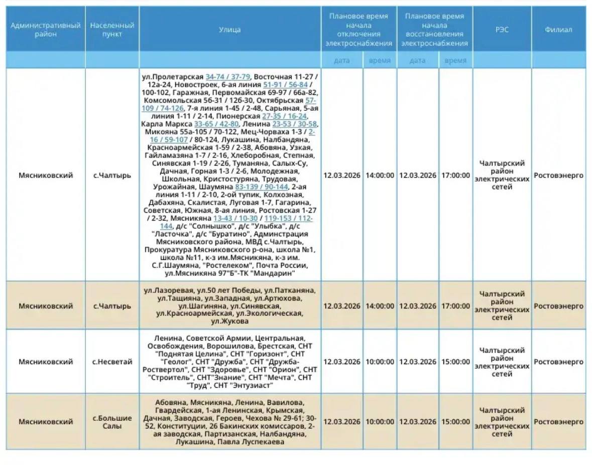 В связи с плановым отключением электроэнергии в с. Большие Салы и с. Несветай возможны перебои с водоснабжением в вышеуказанных населённых пунктах.
